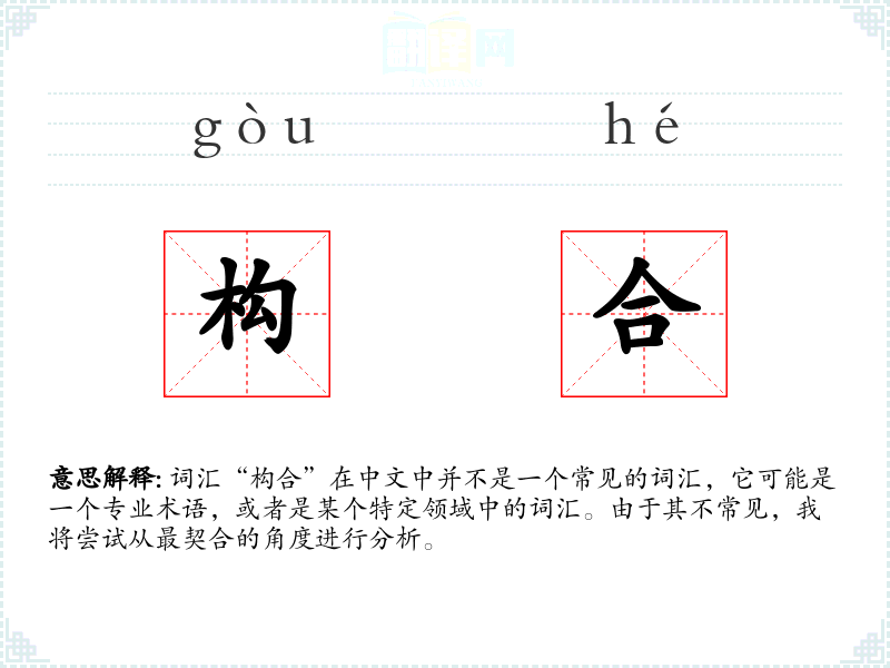词汇“构合”在中文中并不是一个常见的词汇,它可能是一个专业术语,或者是某个特定领域中的词汇。由于其不常见,我将尝试从最契合的角度进行分析。