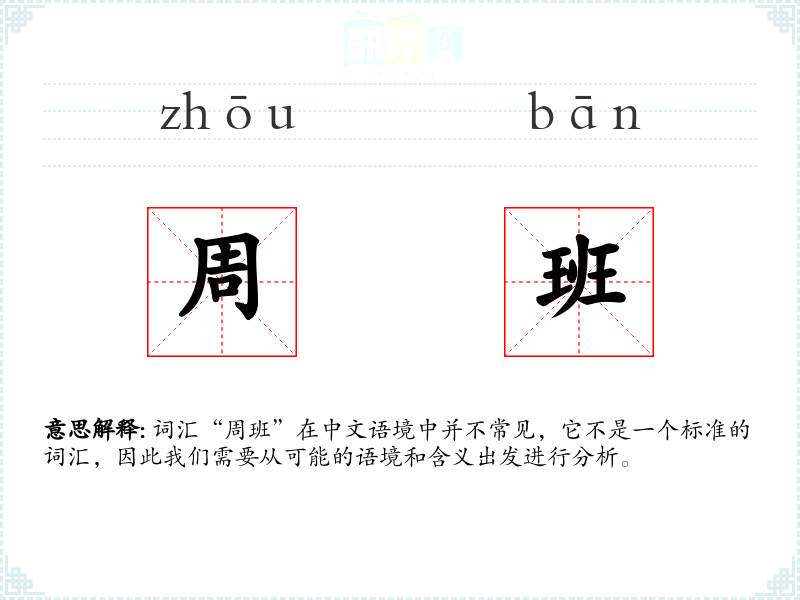 词汇“周班”在中文语境中并不常见,它不是一个标准的词汇,因此我们需要从可能的语境和含义出发进行分析。