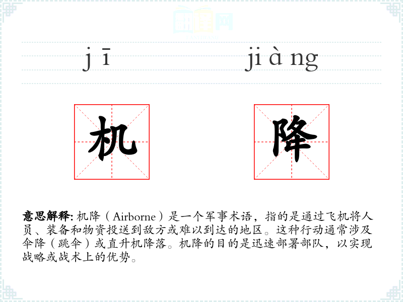 在不同语言中,机降的对应词汇可能有所不同,但其基本含义和军事应用是相似的。例如,在英语中,机降可以翻译为“airborne”或“airdrop”。