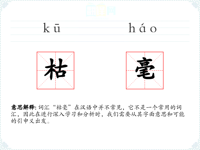 词汇“枯毫”在汉语中并不常见,它不是一个常用的词汇,因此在进行深入学*和分析时,我们需要从其字面意思和可能的引申义出发。