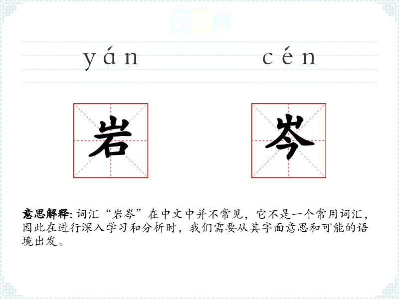 “岩”和“岑”都是古代汉语中的词汇,它们的意义相对稳定,没有发生太大变化。在古代文学作品中,这两个字可能单独使用,描述山石或小山。