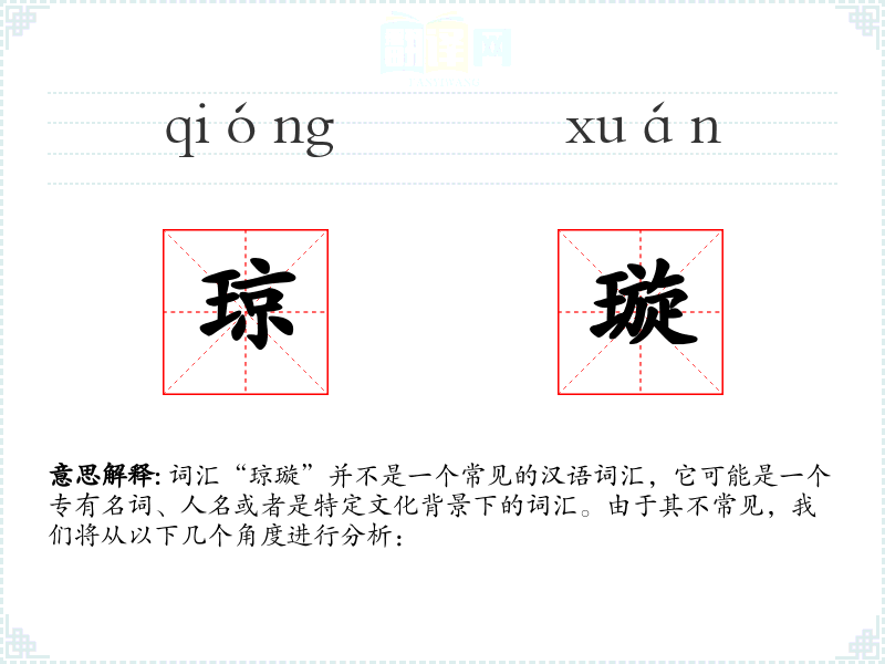 - 反义词:无(由于“琼璇”不是一个常用词汇,反义词不适用)