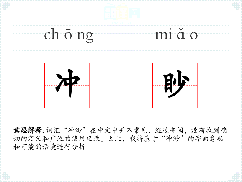 词汇“冲渺”在中文中并不常见,经过查阅,没有找到确切的定义和广泛的使用记录。因此,我将基于“冲渺”的字面意思和可能的语境进行分析。