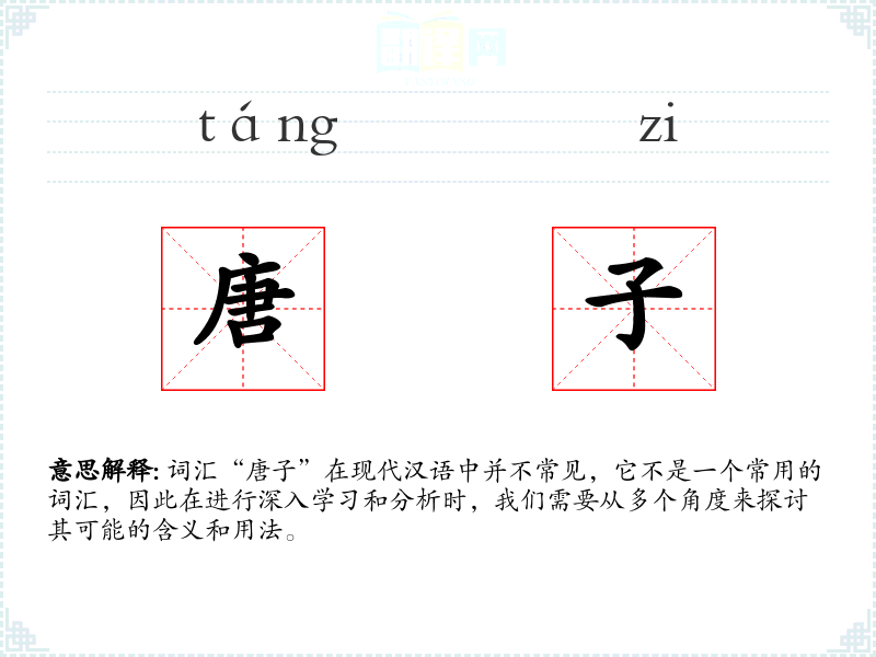 词汇“唐子”在现代汉语中并不常见,它不是一个常用的词汇,因此在进行深入学*和分析时,我们需要从多个角度来探讨其可能的含义和用法。