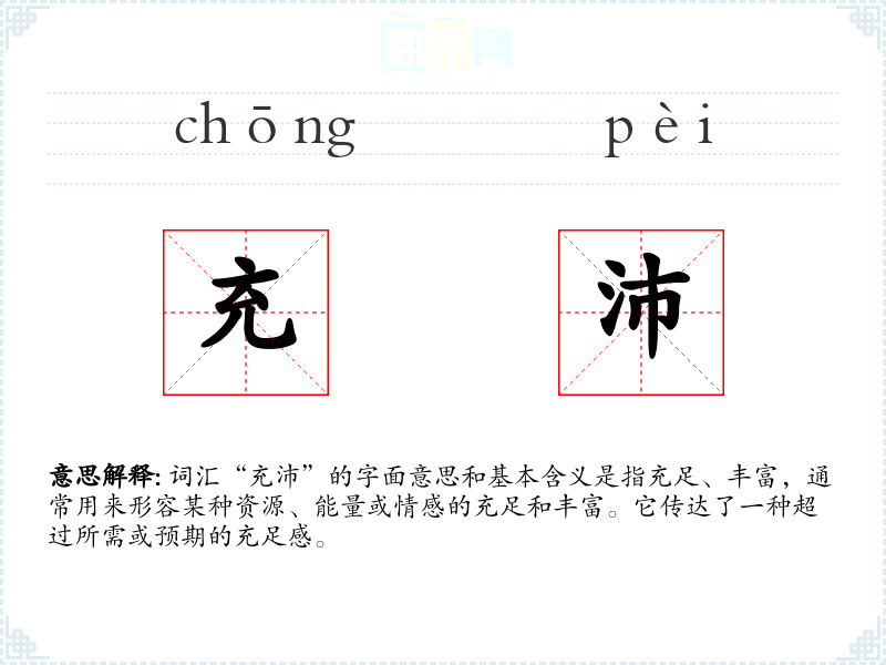 “充沛”一词源自古代汉语,其构成由“充”和“沛”两个字组成,“充”意为充满,“沛”意为丰富。在历史演变中,这个词一直用来形容充足和丰富。