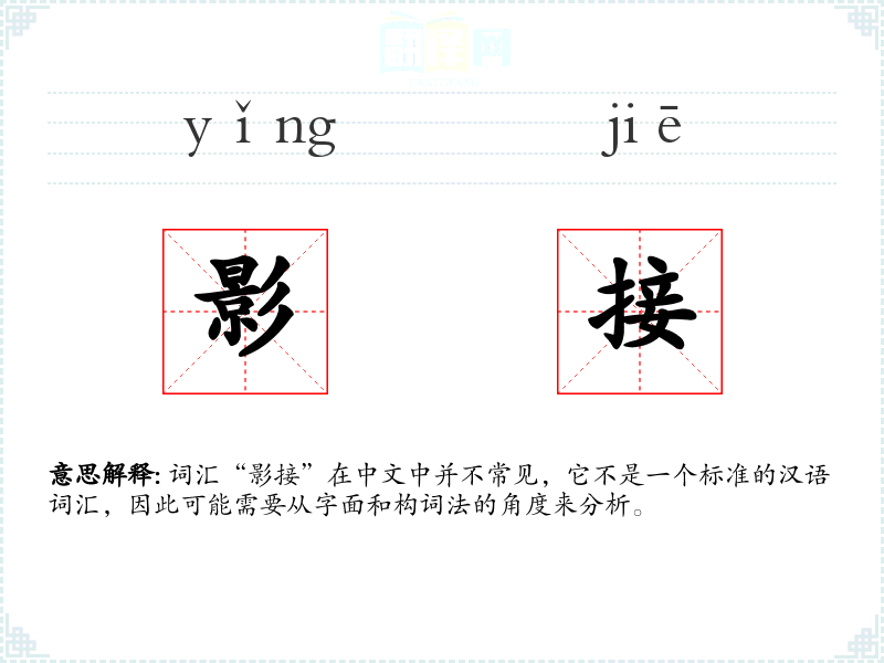 词汇“影接”在中文中并不常见,它不是一个标准的汉语词汇,因此可能需要从字面和构词法的角度来分析。