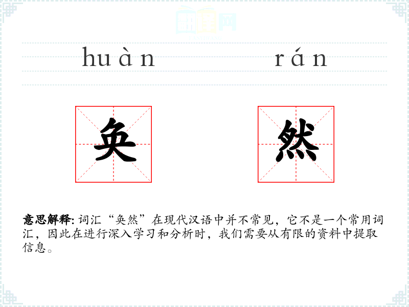 词汇“奂然”在现代汉语中并不常见,它不是一个常用词汇,因此在进行深入学习和分析时,我们需要从有限的资料中提取信息。