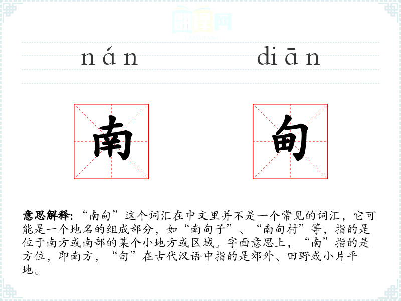同义词:南郊、南野、南乡 反义词:北甸(假设存在)