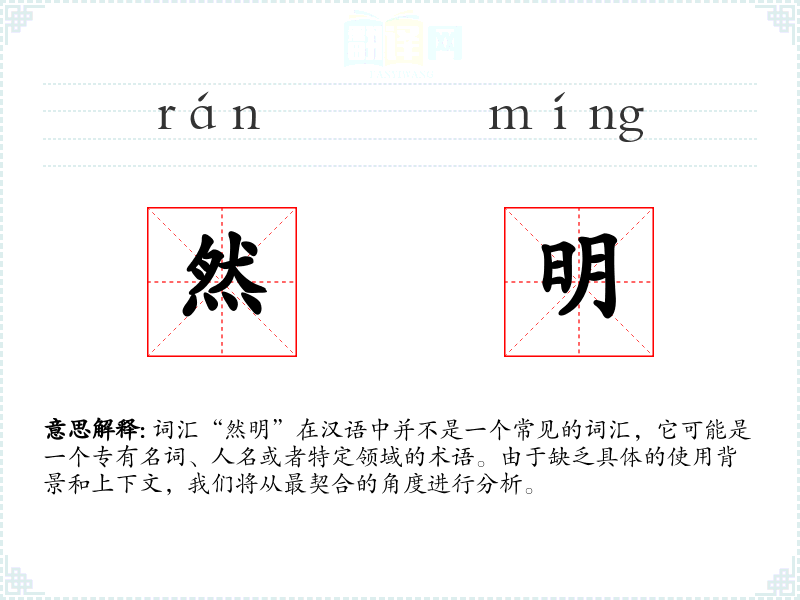 词汇“然明”在汉语中并不是一个常见的词汇,它可能是一个专有名词、人名或者特定领域的术语。由于缺乏具体的使用背景和上下文,我们将从最契合的角度进行分析。