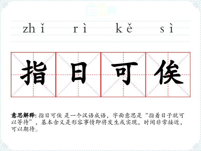 指日可俟 源自古代汉语,其结构为“指日”+“可俟”,其中“指日”意为指定日期,“可俟”意为可以等待。这个成语在历史上一直用来表达对未来**的期待和信心。
