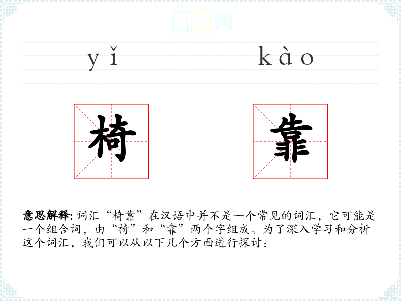 词汇“椅靠”在汉语中并不是一个常见的词汇,它可能是一个组合词,由“椅”和“靠”两个字组成。为了深入学习和分析这个词汇,我们可以从以下几个方面进行探讨: