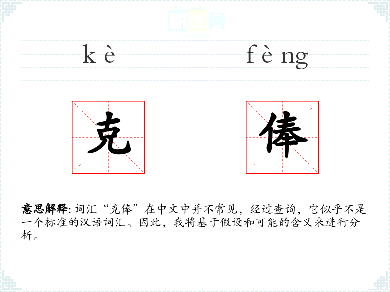 词汇“克俸”在中文中并不常见,经过查询,它似乎不是一个标准的汉语词汇。因此,我将基于假设和可能的含义来进行分析。