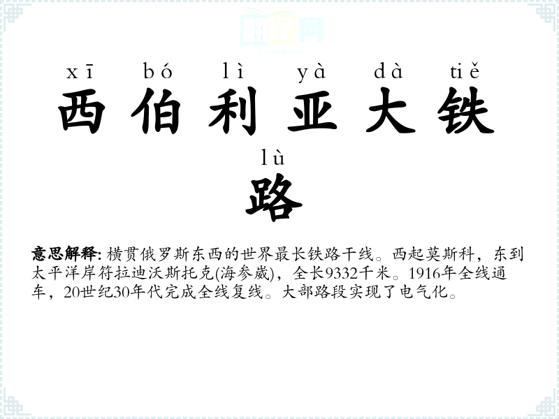 西伯利亚大铁路的分字解释