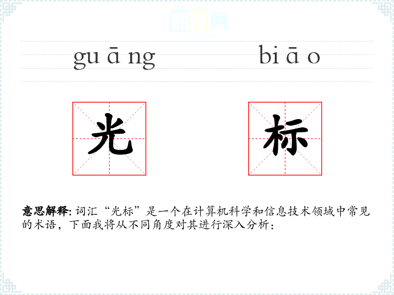 词汇“光标”是一个在计算机科学和信息技术领域中常见的术语,下面我将从不同角度对其进行深入分析: