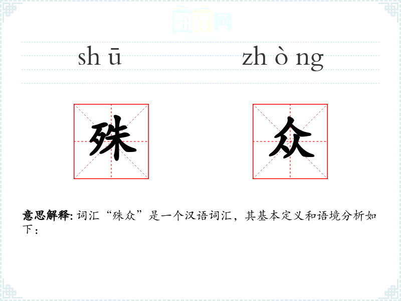 词汇“殊众”是一个汉语词汇,其基本定义和语境分析如下: