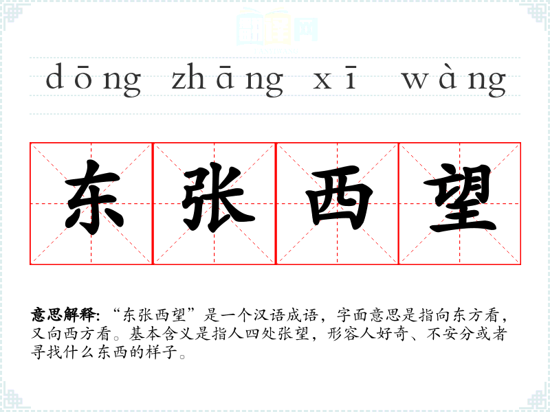 "东张西望"的意思解释、东张西望是什么意思由翻译网汉语词典查词提供。