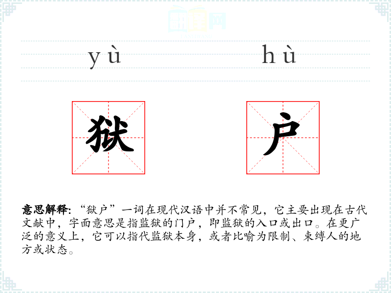 "狱户"的意思解释、狱户是什么意思由翻译网汉语词典查词提供。