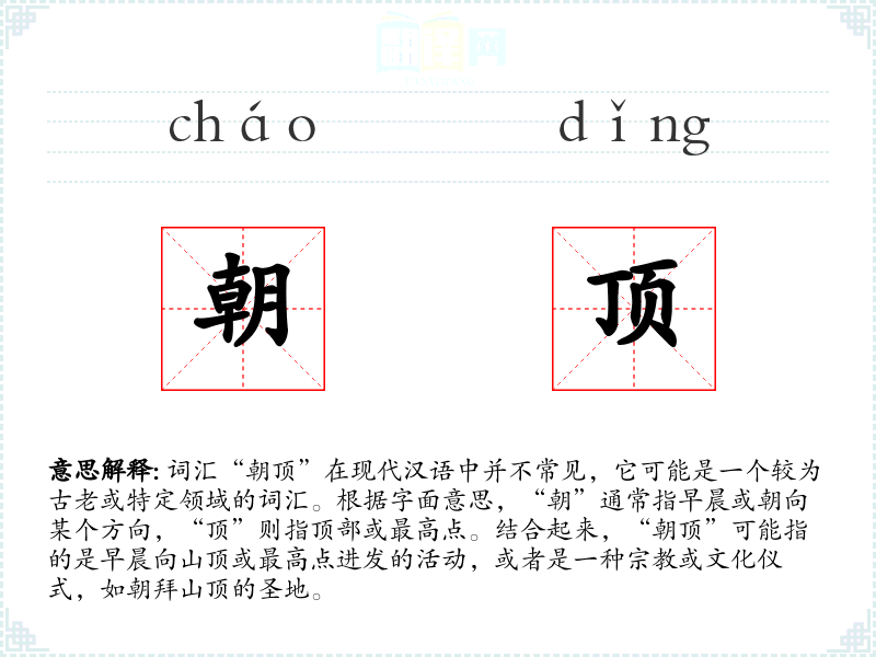 "朝顶"的意思解释、朝顶是什么意思由翻译网汉语词典查词提供。