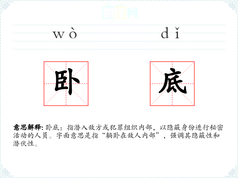 "卧底"的意思解释、卧底是什么意思由翻译网汉语词典查词提供。