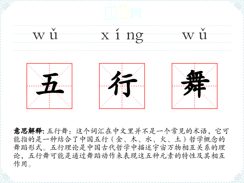 五行舞作为一个结合了深厚文化背景和哲学思想的舞蹈形式,它不仅是一种艺术表现,也是一种文化传承。对于语言学*者来说,了解这样的词汇可以帮助更深入地理解**文化的多样性和复杂性。