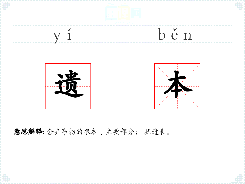 舍弃事物的根本﹑主要部分; 犹遗表。
