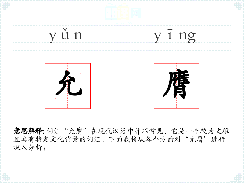 词汇“允膺”在现代汉语中并不常见,它是一个较为文雅且具有特定文化背景的词汇。下面我将从各个方面对“允膺”进行深入分析: