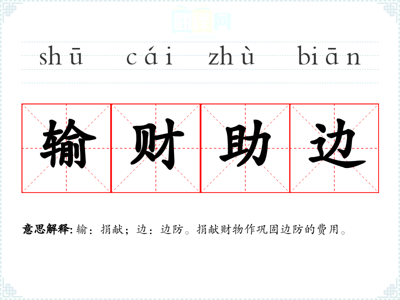 输:捐献;边:边防。捐献财物作巩固边防的费用。