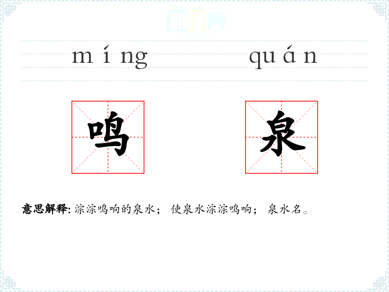 淙淙鸣响的泉水; 使泉水淙淙鸣响; 泉水名。