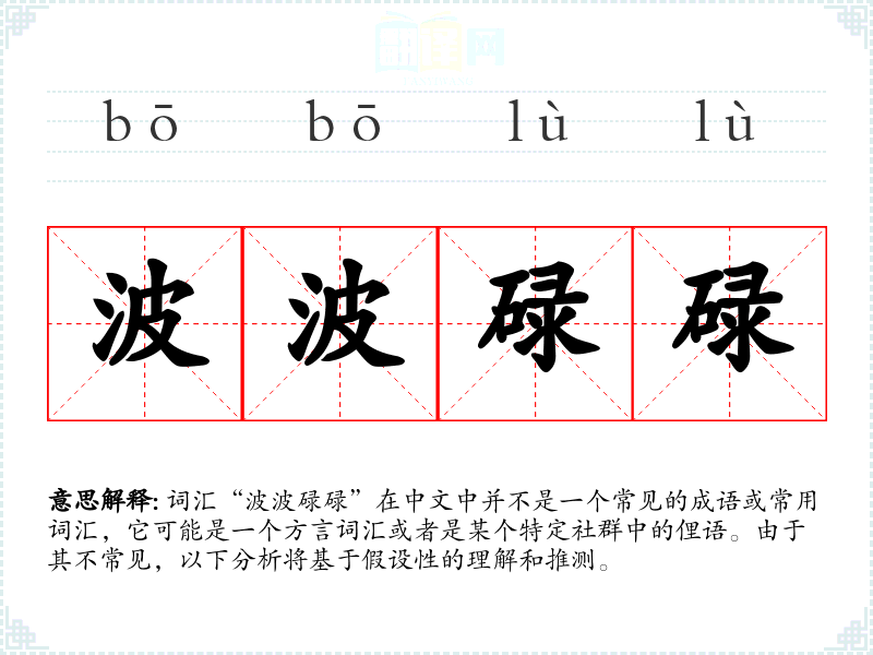 词汇“波波碌碌”在中文中并不是一个常见的成语或常用词汇,它可能是一个方言词汇或者是某个特定社群中的俚语。由于其不常见,以下分析将基于假设性的理解和推测。