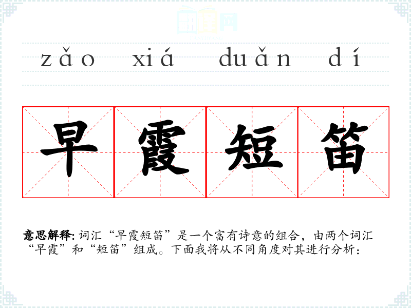 词汇“早霞短笛”是一个富有诗意的组合,由两个词汇“早霞”和“短笛”组成。下面我将从不同角度对其进行分析: