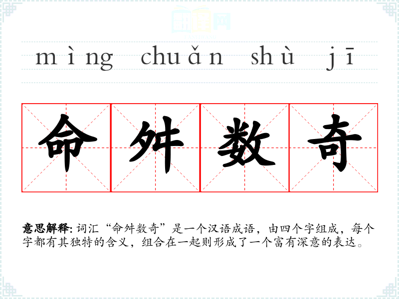 词汇“命舛数奇”是一个汉语成语,由四个字组成,每个字都有其独特的含义,组合在一起则形成了一个富有深意的表达。