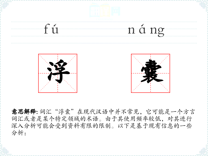 词汇“浮囊”在现代汉语中并不常见,它可能是一个方言词汇或者是某个特定领域的术语。由于其使用频率较低,对其进行深入分析可能会受到资料有限的限制。以下是基于现有信息的一些分析: