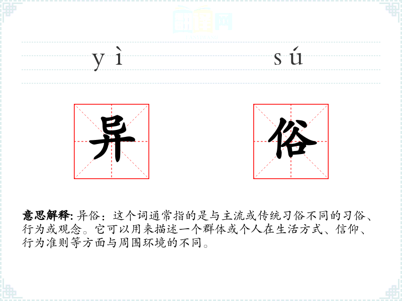 "异俗"的意思解释、异俗是什么意思由翻译网汉语词典查词提供。