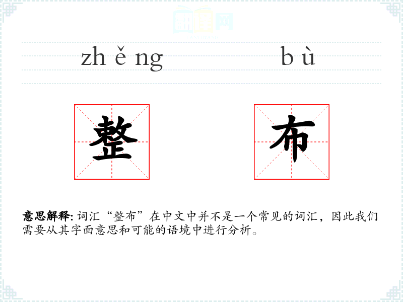 词汇“整布”在中文中并不是一个常见的词汇,因此我们需要从其字面意思和可能的语境中进行分析。