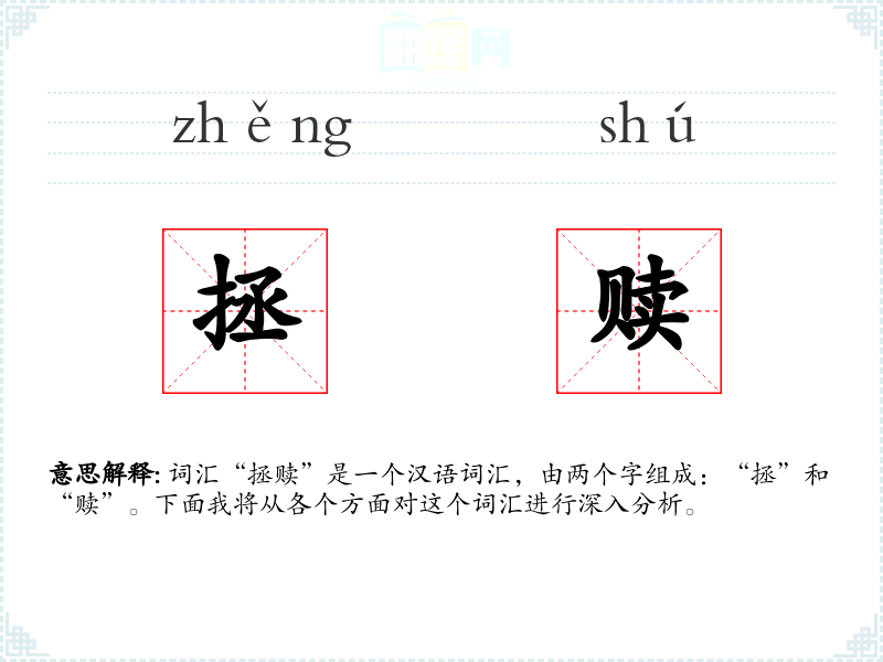 词汇“拯赎”是一个汉语词汇,由两个字组成:“拯”和“赎”。下面我将从各个方面对这个词汇进行深入分析。