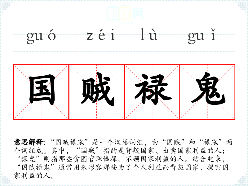“国贼禄鬼”这个词的词源较为直接,由“国贼”和“禄鬼”两个词组合而成。在历史上,这个词常用于描述那些在政治上背叛国家、贪图私利的人物。随着时间的推移,这个词的使用范围和语境有所变化,但核心意义保持不变。