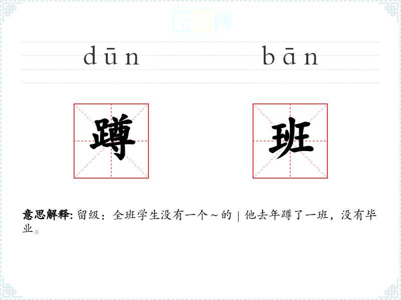 留级:全班学生没有一个~的|他去年蹲了一班,没有毕业。