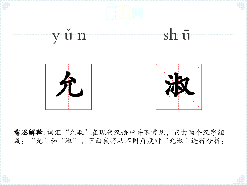 词汇“允淑”在现代汉语中并不常见,它由两个汉字组成:“允”和“淑”。下面我将从不同角度对“允淑”进行分析: