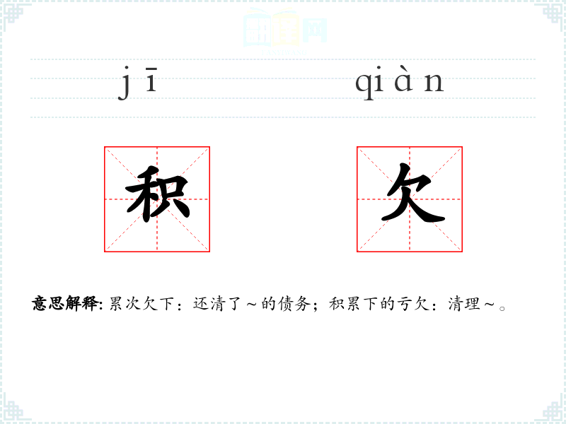 累次欠下:还清了~的债务;积累下的亏欠:清理~。