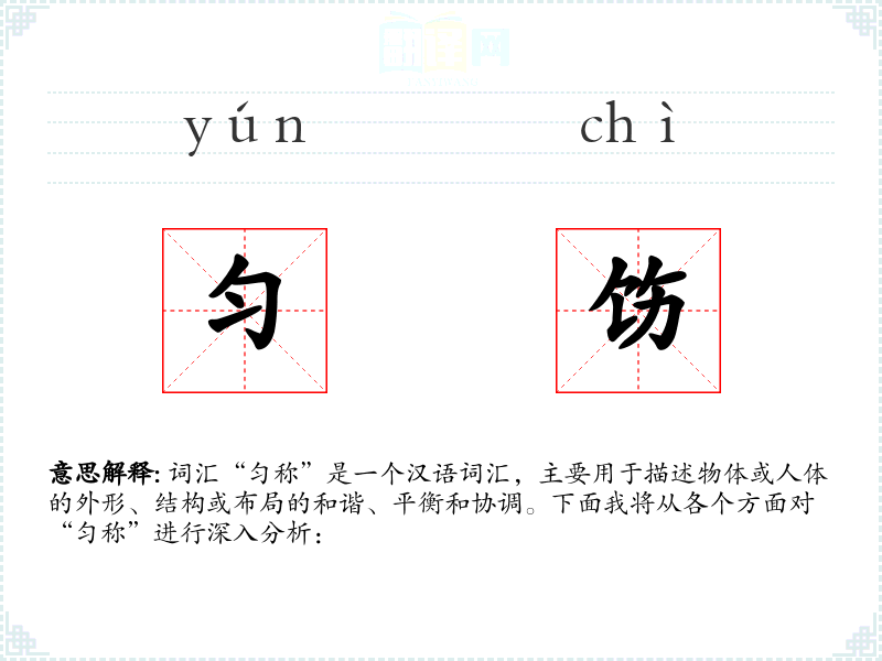 词汇“匀称”是一个汉语词汇,主要用于描述物体或人体的外形、结构或布局的和谐、平衡和协调。下面我将从各个方面对“匀称”进行深入分析: