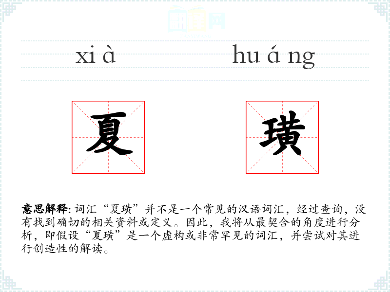 由于“夏璜”不是一个已知的词汇,我们可以假设它是由两个汉字组成的:“夏”和“璜”。