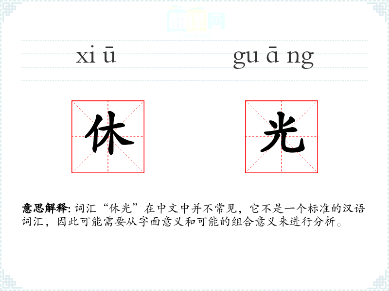 词汇“休光”在中文中并不常见,它不是一个标准的汉语词汇,因此可能需要从字面意义和可能的组合意义来进行分析。