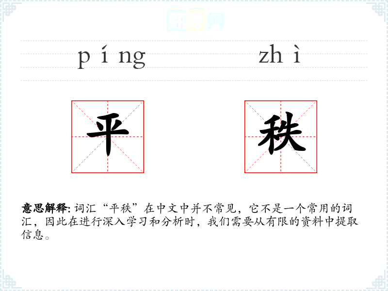 词汇“平秩”在中文中并不常见,它不是一个常用的词汇,因此在进行深入学*和分析时,我们需要从有限的资料中提取信息。