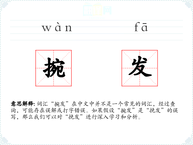 词汇“捥发”在中文中并不是一个常见的词汇,经过查询,可能存在误解或打字错误。如果假设“捥发”是“挽发”的误写,那么我们可以对“挽发”进行深入学*和分析。