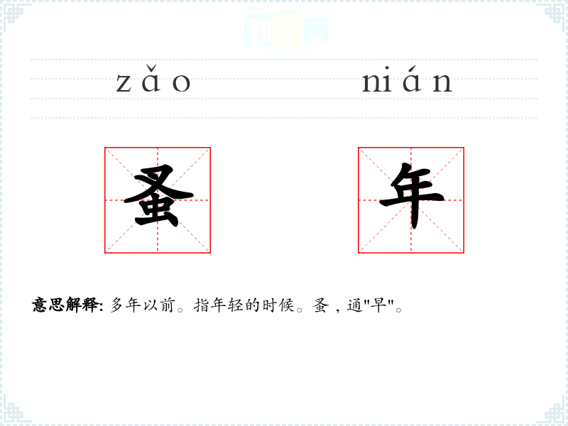 多年以前。指年轻的时候。蚤﹐通"早"。