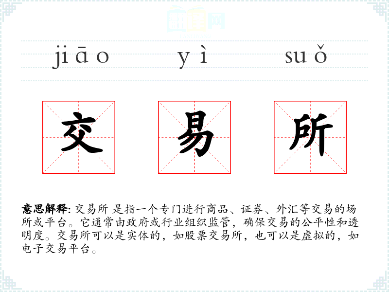 "交易所"的意思解释、交易所是什么意思由翻译网汉语词典查词提供。
