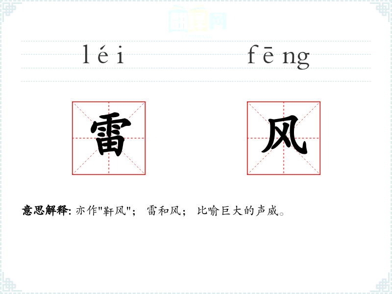 亦作"靬风"; 雷和风; 比喻巨大的声威。