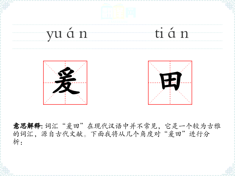 词汇“爰田”在现代汉语中并不常见,它是一个较为古雅的词汇,源自古代文献。下面我将从几个角度对“爰田”进行分析:
