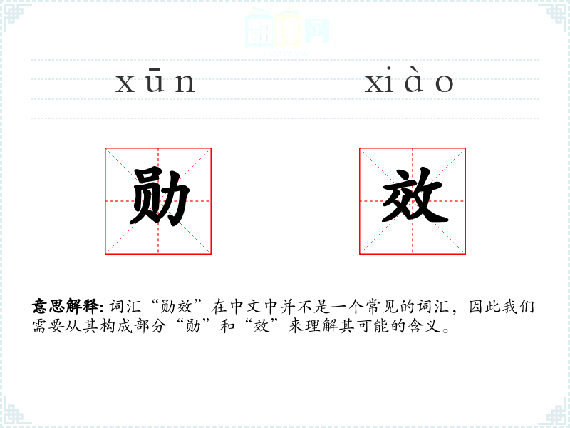 词汇“勋效”在中文中并不是一个常见的词汇,因此我们需要从其构成部分“勋”和“效”来理解其可能的含义。