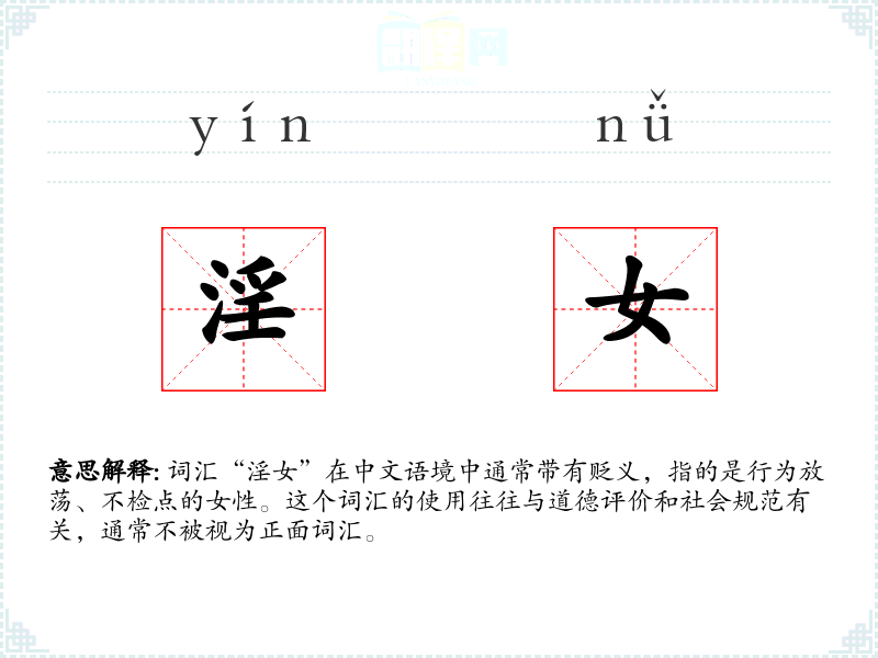 词汇“淫女”在中文语境中通常带有贬义,指的是行为放荡、不检点的女性。这个词汇的使用往往与道德评价和社会规范有关,通常不被视为正面词汇。
